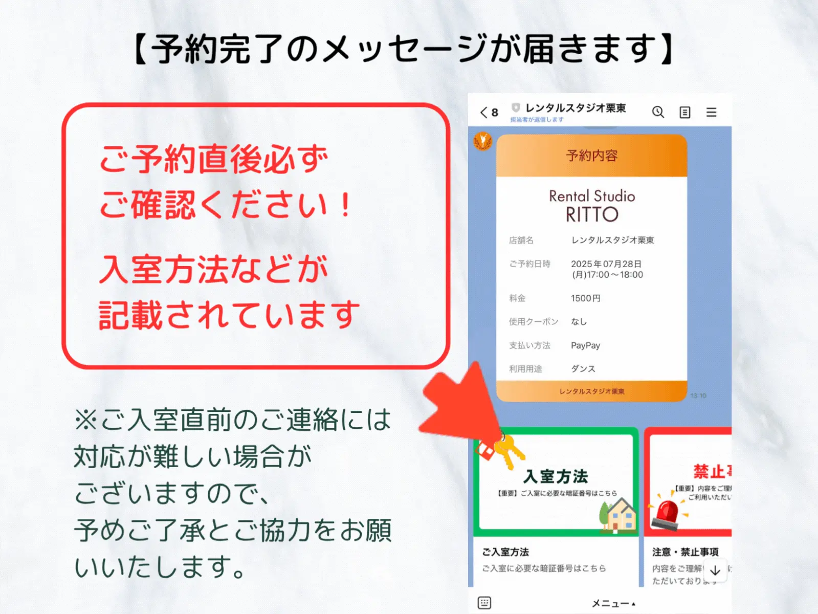 ※予約の無い状態でご入室された場合、サイレンが鳴ります -
